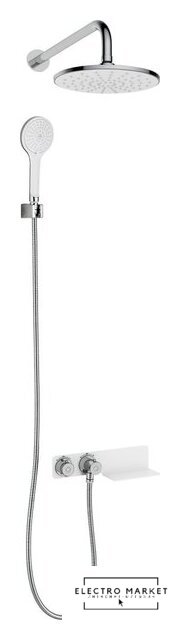 | Комплектация | верхний душ, ручной душ (лейка), держатель лейки, шланг, смеситель, полочка |