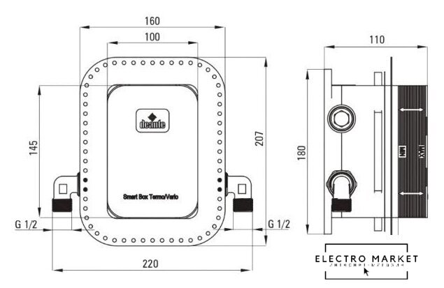 душевая система (с верхним душем), скрытый монтаж, термостатический смеситель, верхний душ 250 мм, ручной душ 100 мм