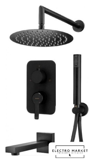 | Комплектация | верхний душ, ручной душ (лейка), держатель лейки, шланг, смеситель, излив для ванны |