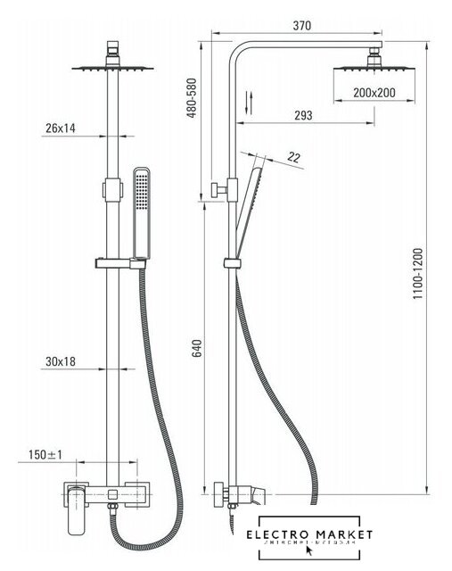душевая система (220 мм), скрытый монтаж, механический смеситель