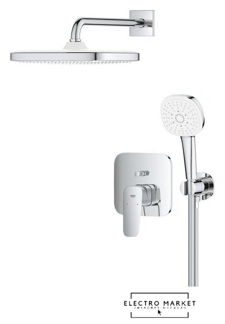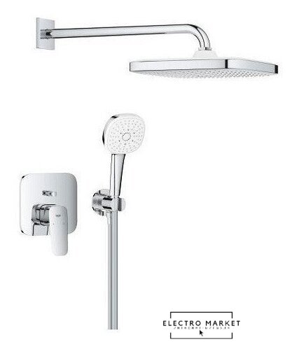 душевая система (с верхним душем), скрытый монтаж, механический смеситель, верхний душ 300 мм, ручной душ 80 мм