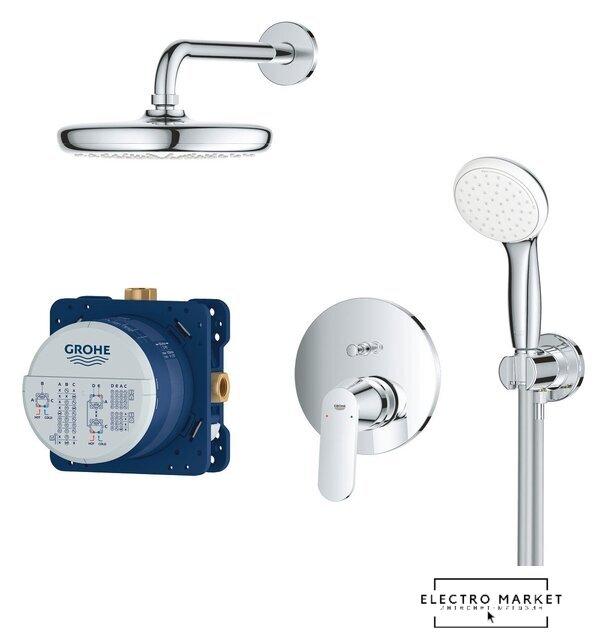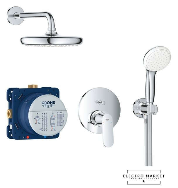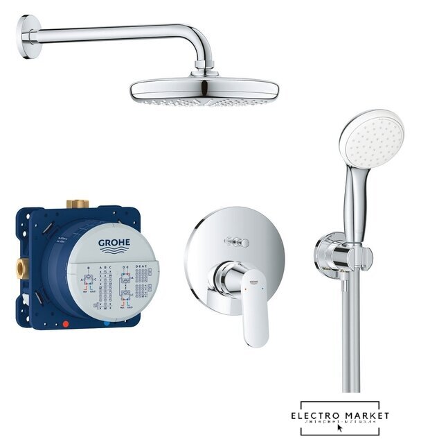 душевая система (с верхним душем), скрытый монтаж, механический смеситель, верхний душ 300 мм, ручной душ