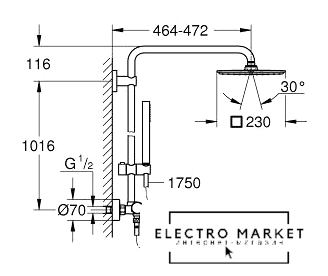душевая система (210 мм), настенный/скрытый монтаж, термостатический смеситель