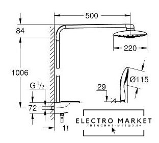 | Вылет верхнего душа | 500 мм |