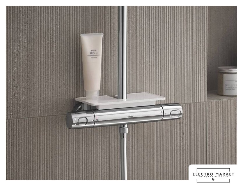 Комплектация | верхний душ, штанга, ручной душ (лейка), держатель лейки, шланг, смеситель, полочки |