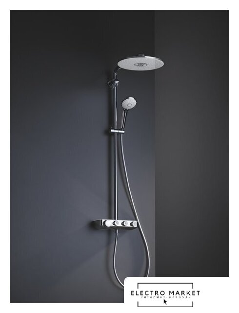 душевая система (с верхним душем), настенный монтаж, термостатический смеситель, верхний душ 280 мм, ручной душ 110 мм