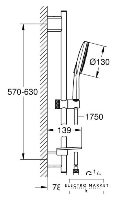 душевой гарнитур (без верхнего душа), настенный монтаж, отсутствует смеситель, ручной душ 130 мм