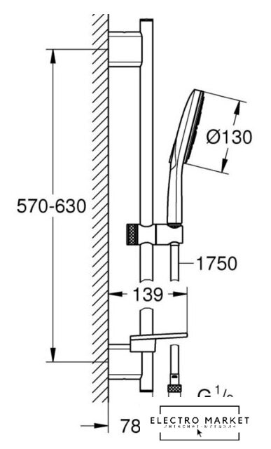 душевой гарнитур (без верхнего душа), настенный монтаж, отсутствует смеситель, ручной душ 130 мм