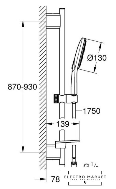 душевой гарнитур (без верхнего душа), настенный монтаж, отсутствует смеситель, ручной душ 130 мм