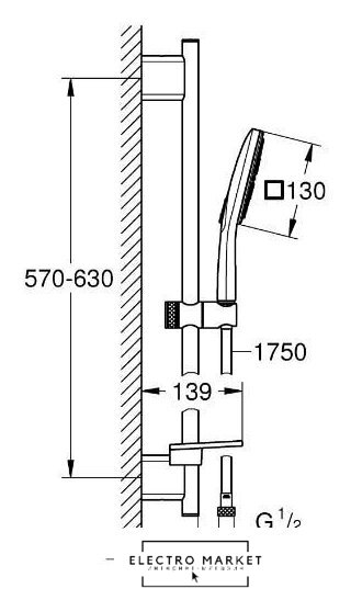 душевой гарнитур (без верхнего душа), настенный монтаж, термостатический смеситель, ручной душ 110 мм