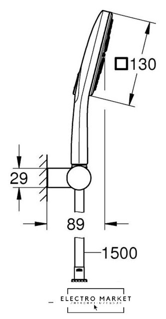 душевой гарнитур (без верхнего душа), настенный монтаж, отсутствует смеситель, ручной душ 130 мм