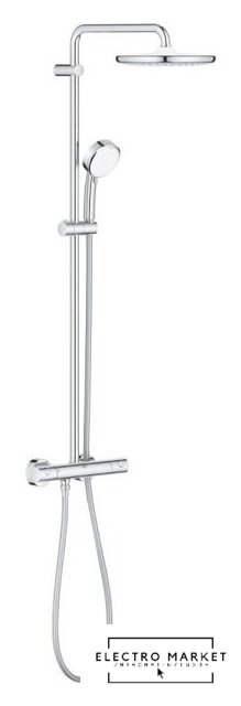 душевая система (с верхним душем), настенный монтаж, термостатический смеситель, верхний душ 250 мм, ручной душ 80 мм