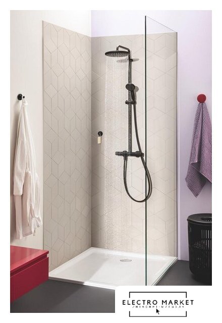 душевая система (с верхним душем), настенный монтаж, термостатический смеситель, верхний душ 250 мм, ручной душ 80 мм