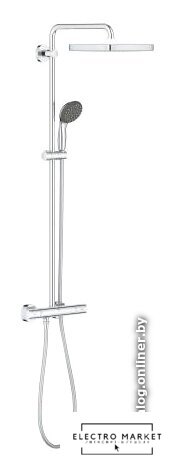 душевая система (с верхним душем), скрытый монтаж, термостатический смеситель, верхний душ 300 мм, ручной душ 35 мм
