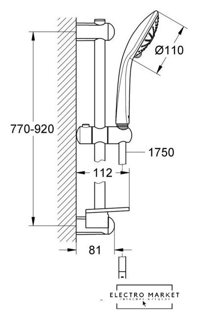 душевой гарнитур (без верхнего душа), настенный монтаж, отсутствует смеситель, ручной душ 120 мм