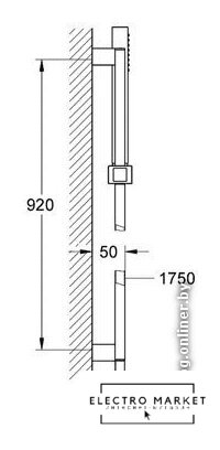 душевой гарнитур (без верхнего душа), настенный монтаж, ручной душ