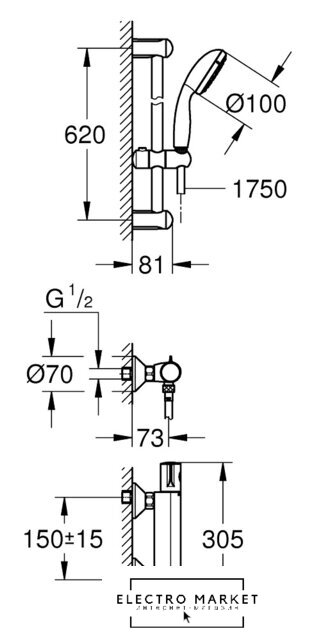 душевой гарнитур, настенный монтаж