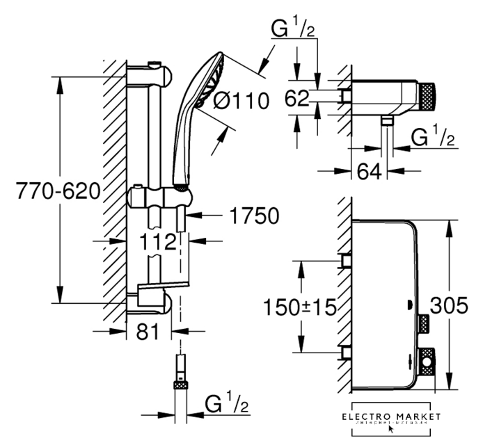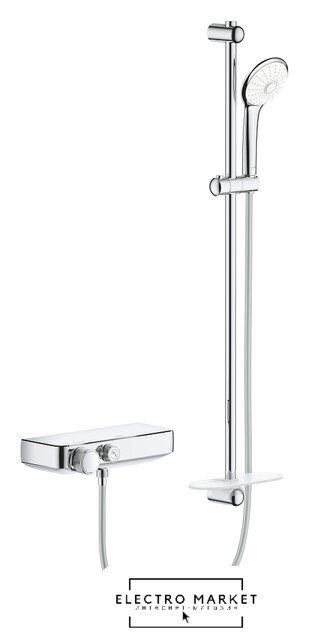 душевой гарнитур, настенный монтаж, термостатический смеситель
