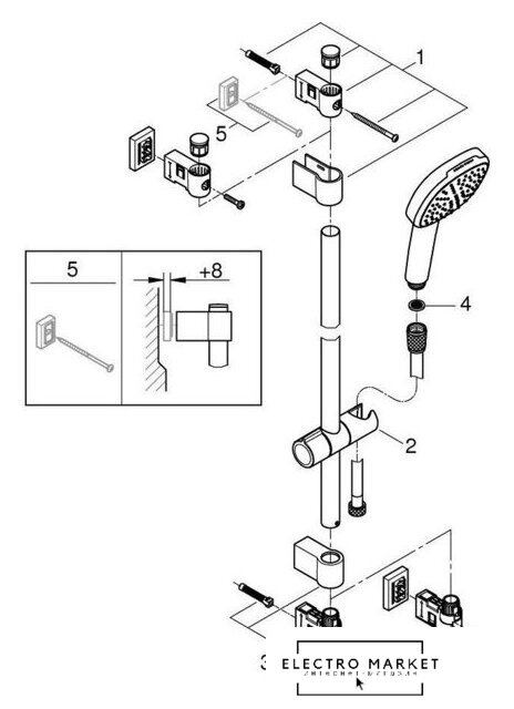душевой гарнитур (без верхнего душа), настенный монтаж, отсутствует смеситель, ручной душ 100 мм