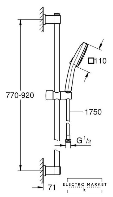 | Комплектация | штанга, ручной душ (лейка), держатель лейки, шланг |