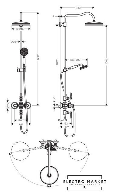 | Диаметр (ширина) верхнего душа | 240 мм |