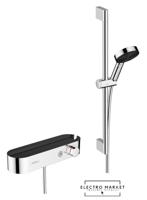 душевой гарнитур, настенный монтаж, термостатический смеситель
