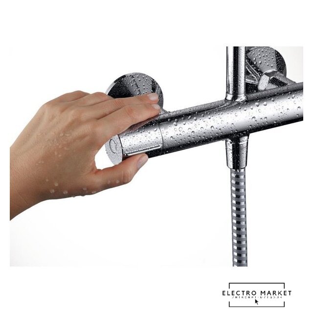 душевая система (с верхним душем), настенный монтаж, термостатический смеситель, верхний душ 250 мм, ручной душ 120 мм
