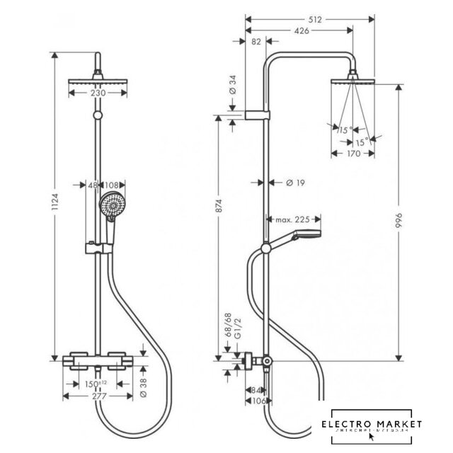 | Серия | Vernis Shape Showerpipe 230 1jet (Hansgrohe) |