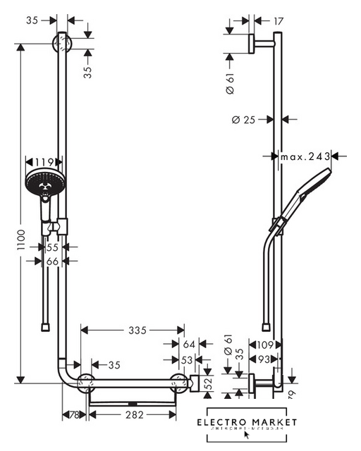 душевой гарнитур, настенный монтаж, отсутствует смеситель