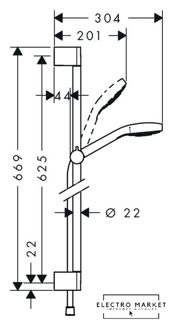 душевой гарнитур, настенный монтаж, отсутствует смеситель