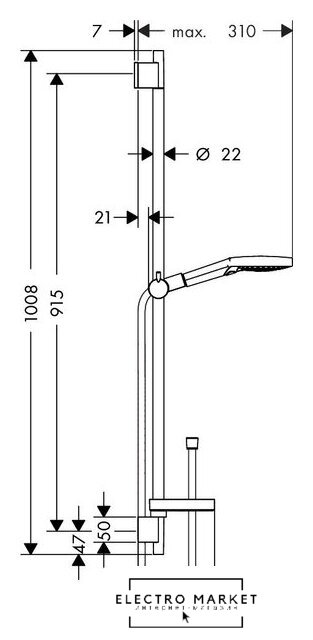 | Комплектация | штанга, ручной душ (лейка), держатель лейки, шланг, мыльница или держатель для мыла |