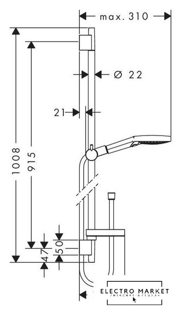 | Комплектация | штанга, ручной душ (лейка), держатель лейки, шланг, мыльница или держатель для мыла |