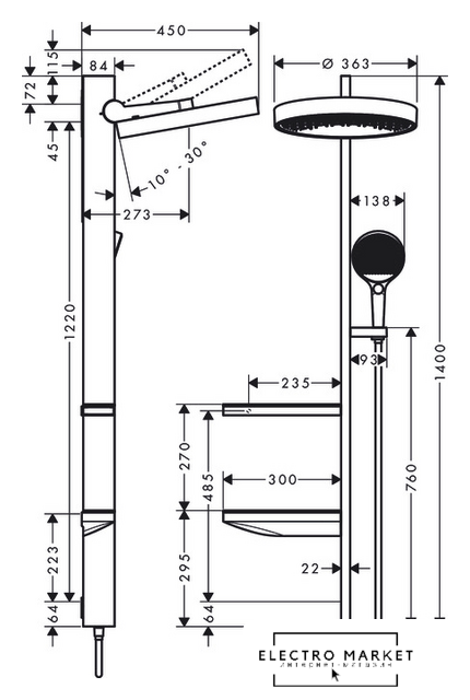 Диаметр (ширина) верхнего душа | 363 мм |