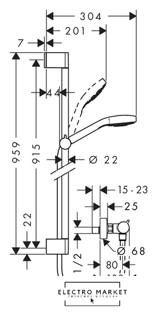 душевой гарнитур, настенный монтаж