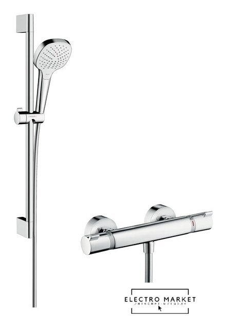 душевой гарнитур, настенный монтаж, термостатический смеситель
