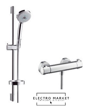 душевой гарнитур, настенный монтаж, термостатический смеситель
