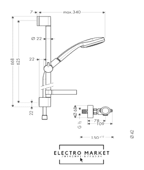 душевой гарнитур (без верхнего душа), настенный монтаж, термостатический смеситель, ручной душ