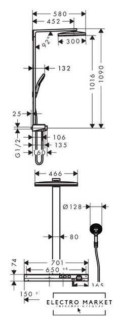 душевая система (355 мм), настенный монтаж, термостатический смеситель