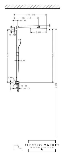 | Диаметр (ширина) верхнего душа | 300 мм |
