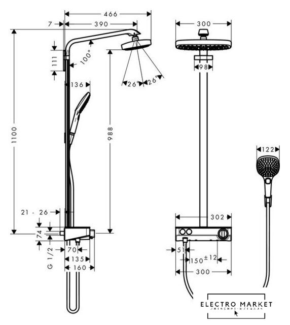 | Серия | Raindance Select E 300 2jet Showerpipe (Hansgrohe) |
