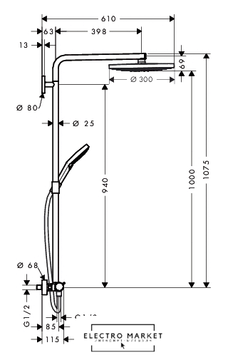 | Диаметр (ширина) верхнего душа | 300 мм |