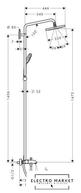 душевая система (310 мм), настенный монтаж, термостатический смеситель