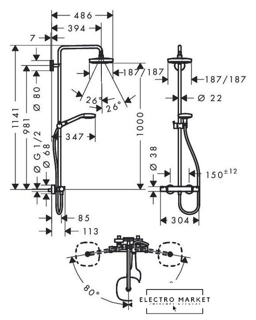 | Серия | Croma Select E 180 2jet Showerpipe (Hansgrohe) |