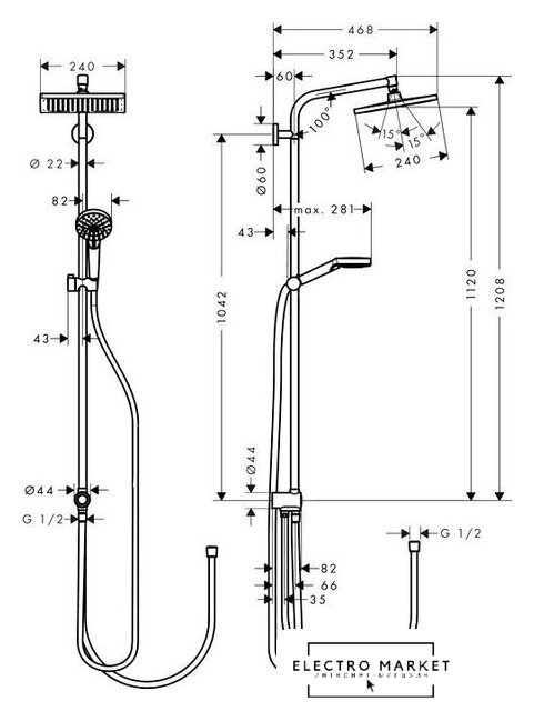 | Диаметр (ширина) верхнего душа | 240 мм |
