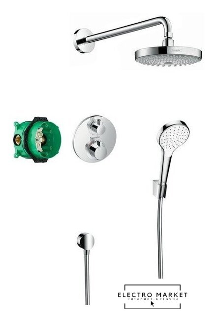 душевая система (с верхним душем), настенный монтаж, термостатический смеситель, верхний душ, ручной душ