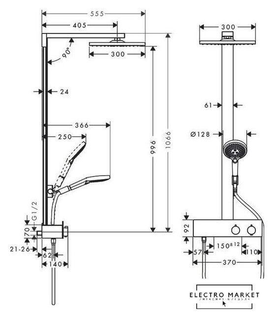 | Диаметр (ширина) верхнего душа | 300 мм |
