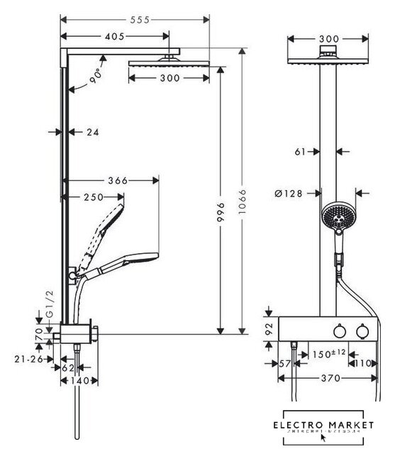 | Серия | Raindance E Showerpipe 300 1jet (Hansgrohe) |