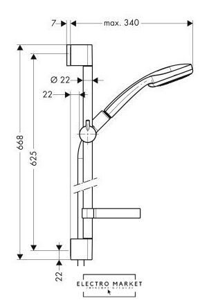 душевой гарнитур, настенный монтаж, термостатический смеситель