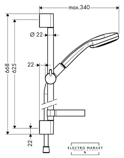 душевой гарнитур (без верхнего душа), настенный монтаж, отсутствует смеситель, ручной душ