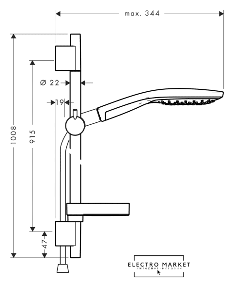 душевой гарнитур, настенный монтаж, отсутствует смеситель